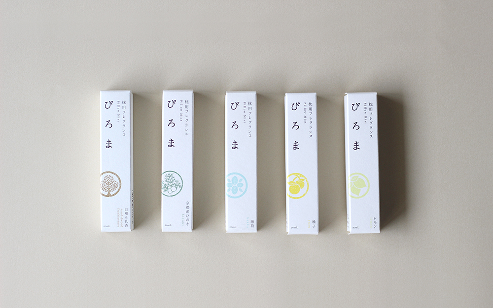 枕用フレグランスと枕用サシェ「ぴろま」シリーズの